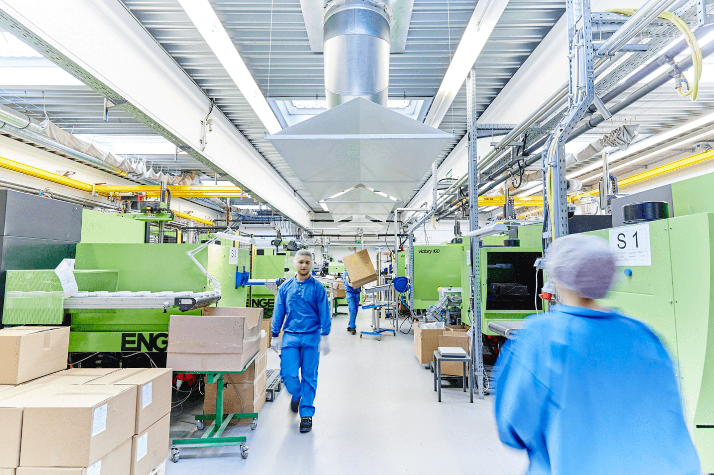 Die Produktion im keimarmen Bereich erfolgt gemäß geprüfter pharmazeutischer Richtlinien (ISO 15378, Primärverpackung für Arzneimittel).